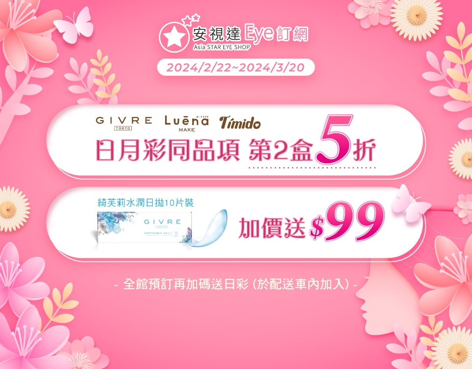 綺芙莉水潤日拋加價送$99 (活動時間:2/22 09:00-3/20 23:59)