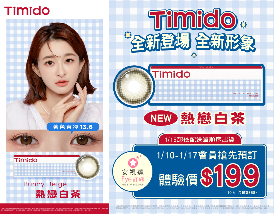TIMIDO全新登場🎉新色體驗價$199🆕(活動時間:1/10 00:00-1/17 23:59)