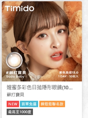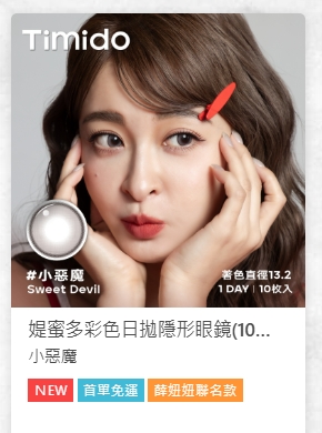 活動說明:於安視達Eye訂網預訂預訂2盒媞蜜多彩色日拋隱形眼鏡10片裝 (蘇打寶貝/小惡魔/心跳咒語 任選)