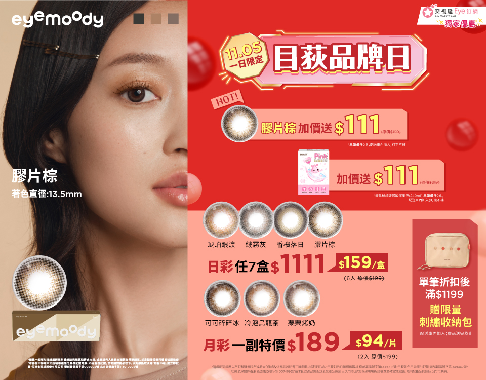 於安視達Eye訂網預訂目荻彩色日拋隱形眼鏡 任7盒享$1111優惠